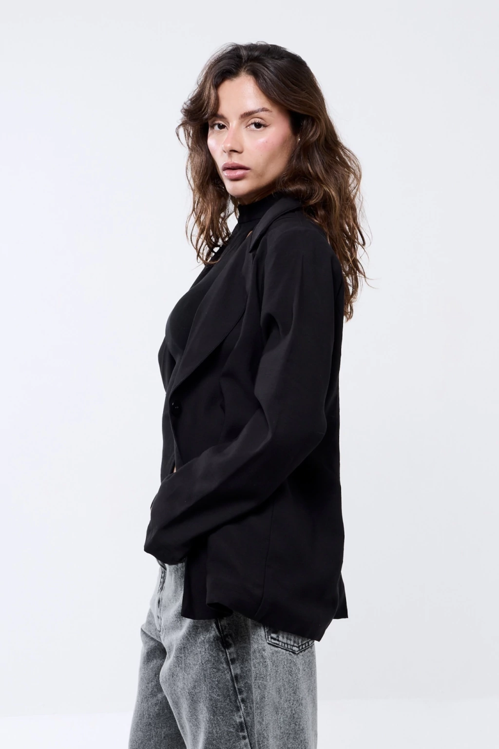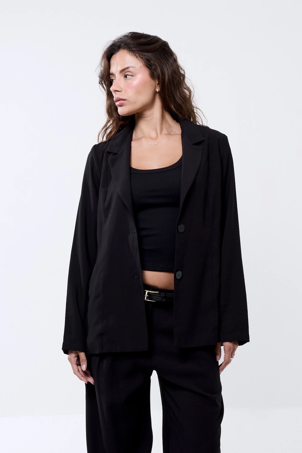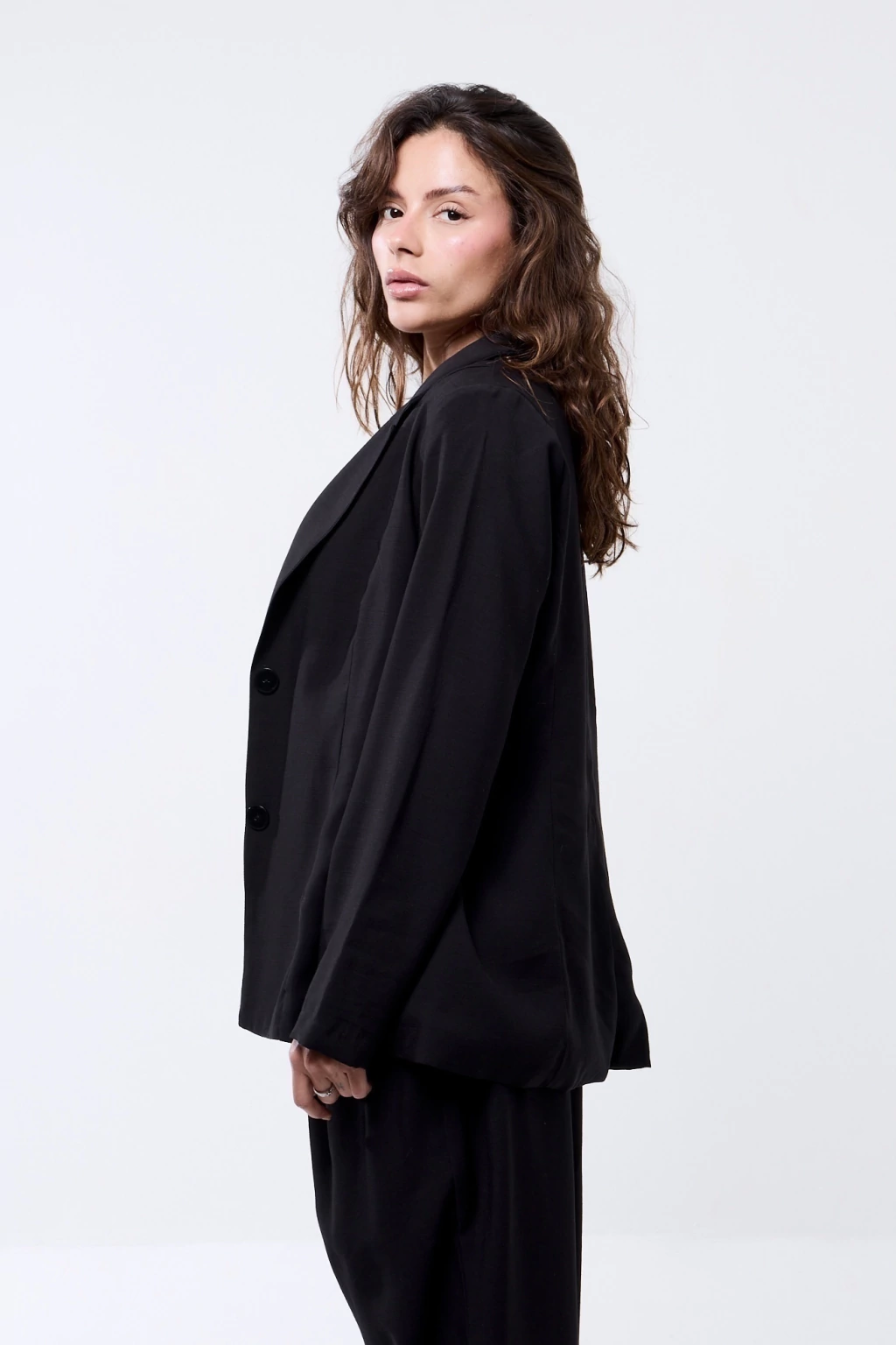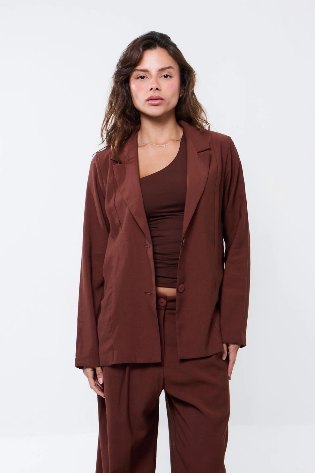 Descrição: Blazer oversized alfaiataria com dois botões para fechamento frontal.