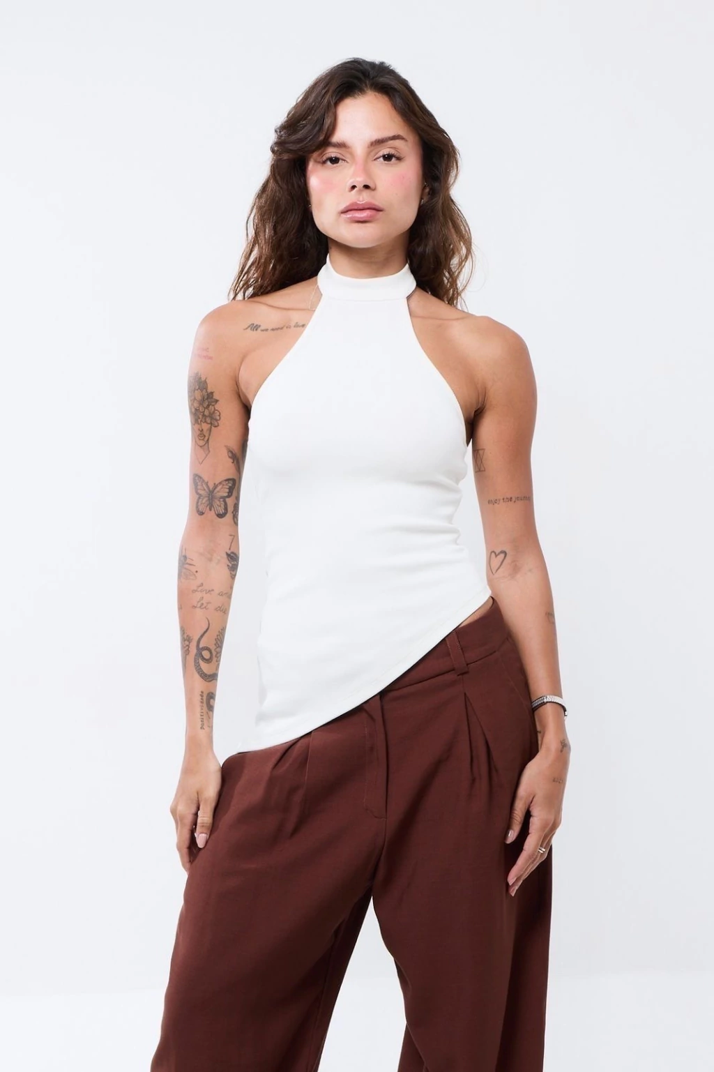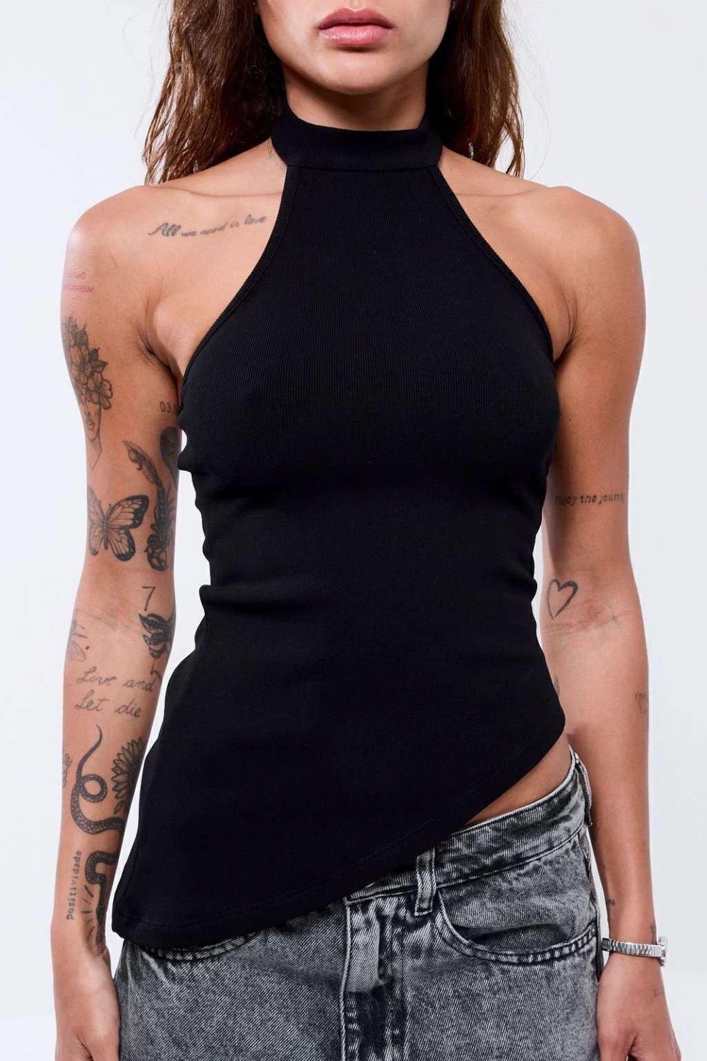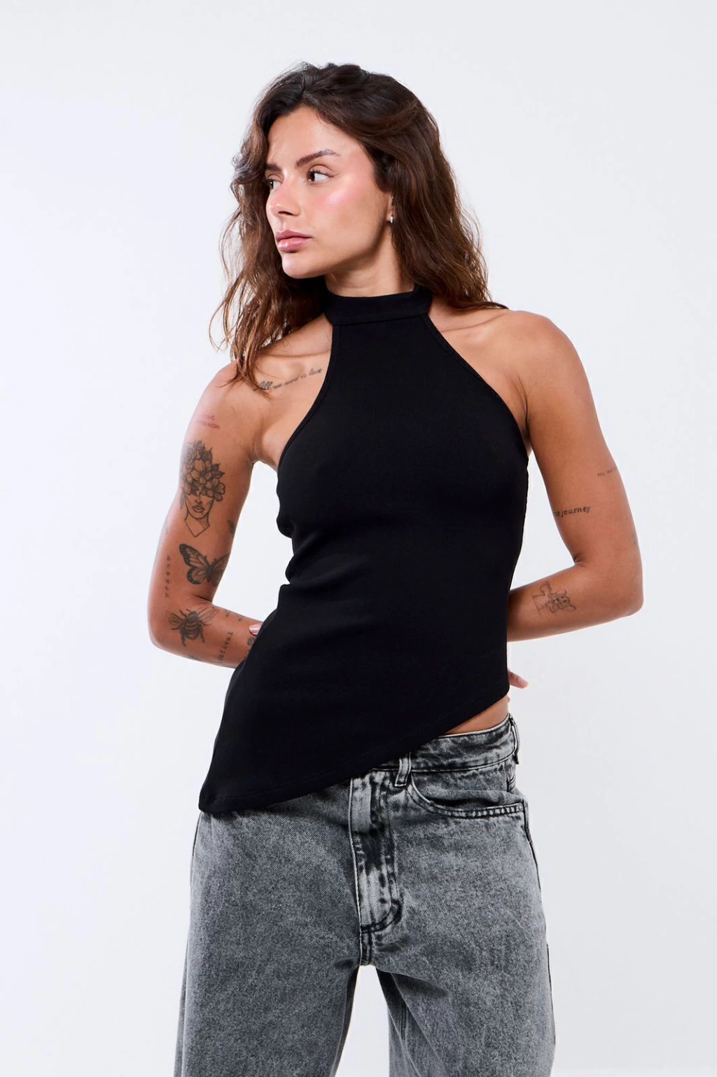 Descrição: Blusa canelada com gola alta e abotoamento no pescoço. Modelagem assimétrica e caimento perfeito, feita em malha de alta qualidade com elasticidade e toque macio. Versátil, vai bem em produções casuais ou mais arrumadas.
