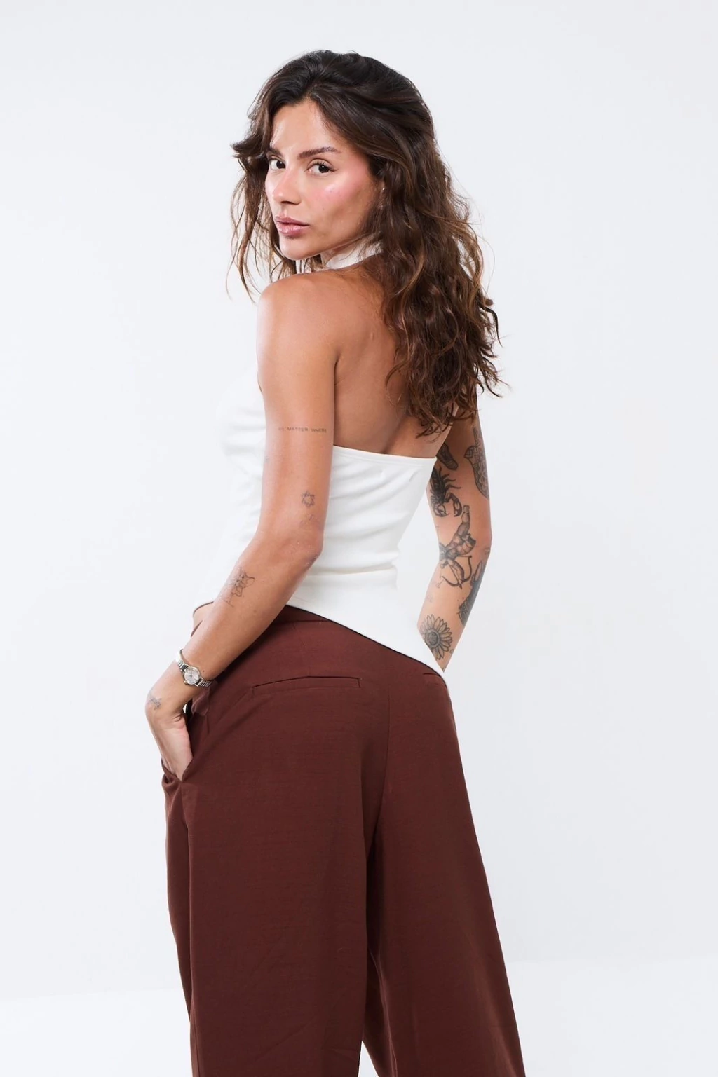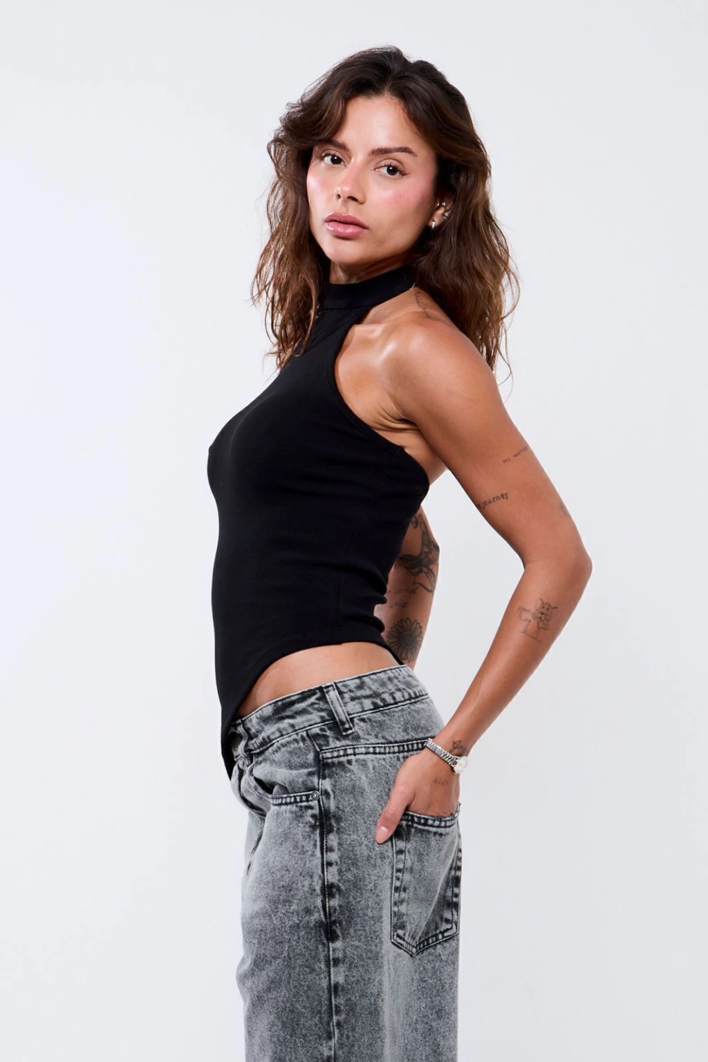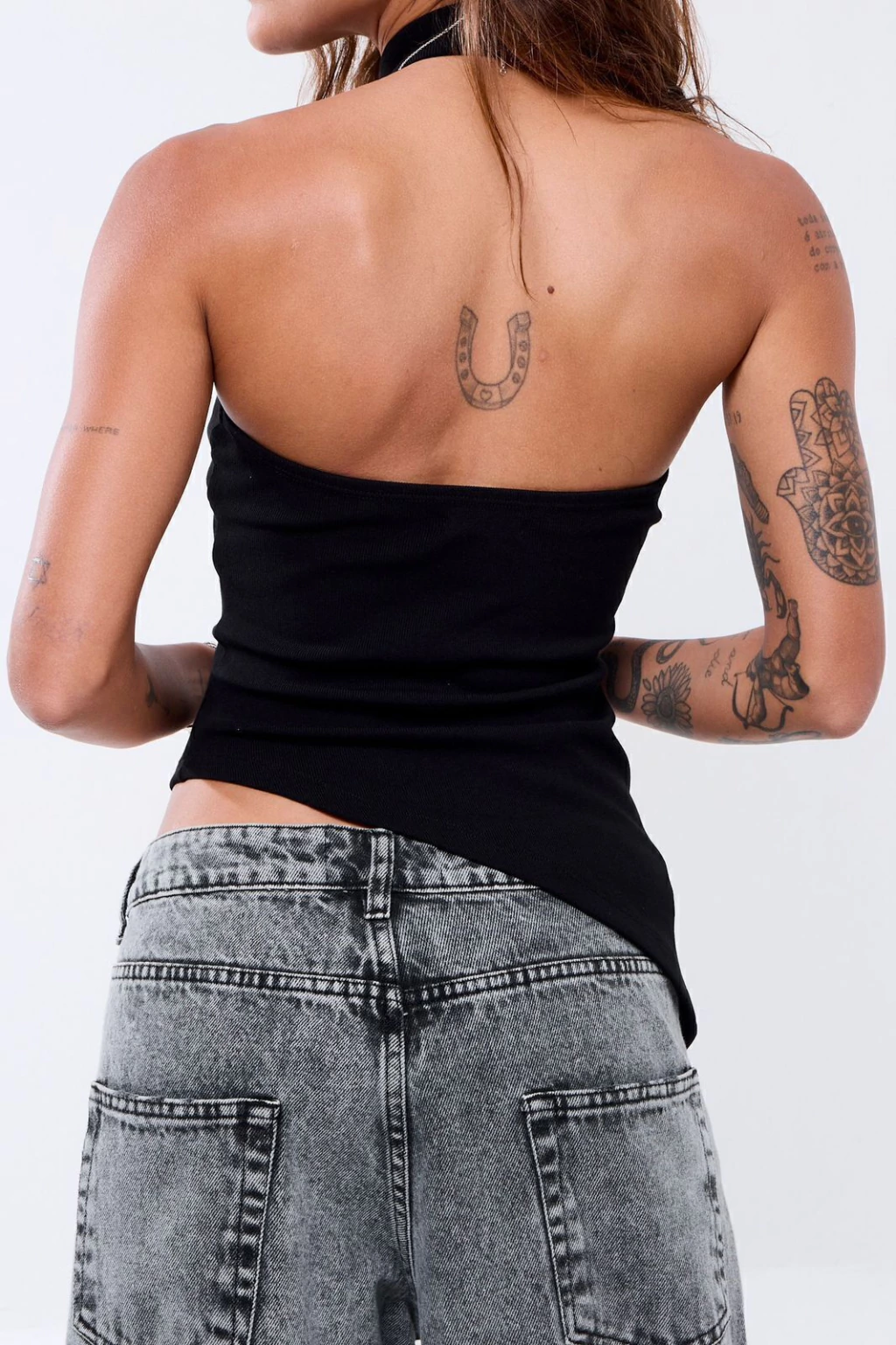Descrição: Blusa canelada com gola alta e abotoamento no pescoço. Modelagem assimétrica e caimento perfeito, feita em malha de alta qualidade com elasticidade e toque macio. Versátil, vai bem em produções casuais ou mais arrumadas.