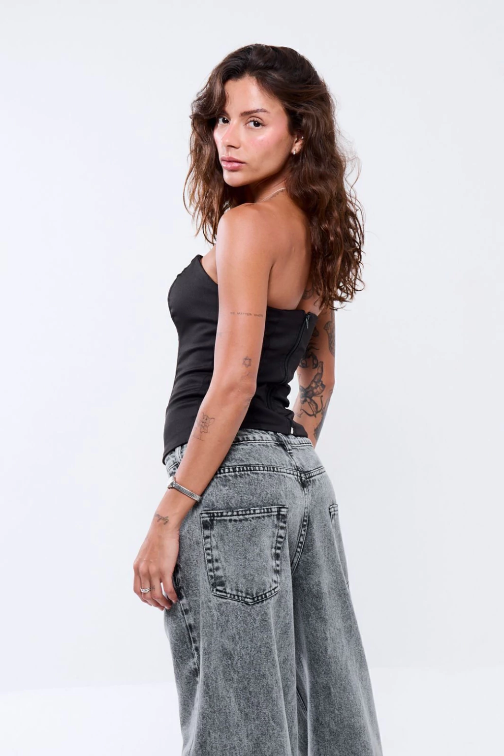 Descrição: Corset tomara que caia alfaiataria com fechamento em zíper nas costas.