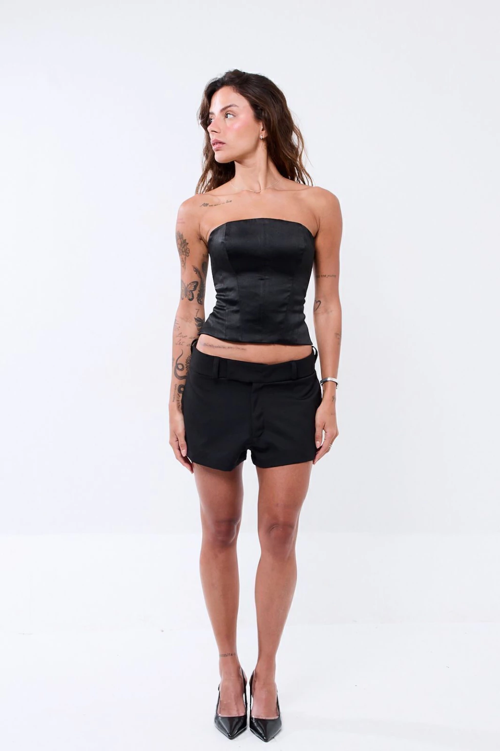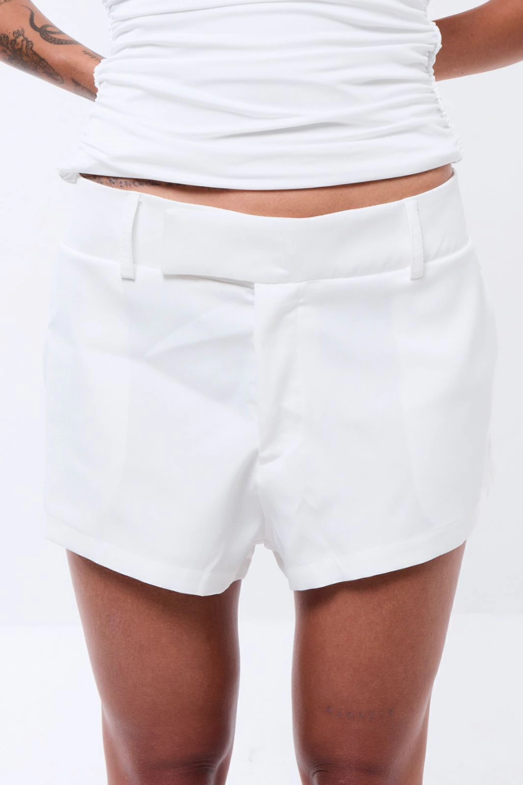 Descrição: Short em tecido de alfaiataria com modelagem soltinha e caimento leve. Possui cós reto com passantes para cinto, pregas frontais e bolsos laterais. Fechamento frontal por zíper e colchete embutido, garantindo um acabamento limpo e discreto. Ideal para compor looks práticos e arrumados.