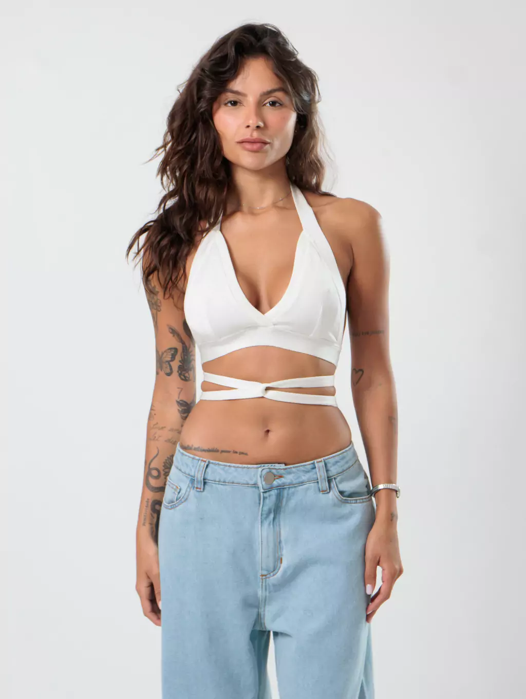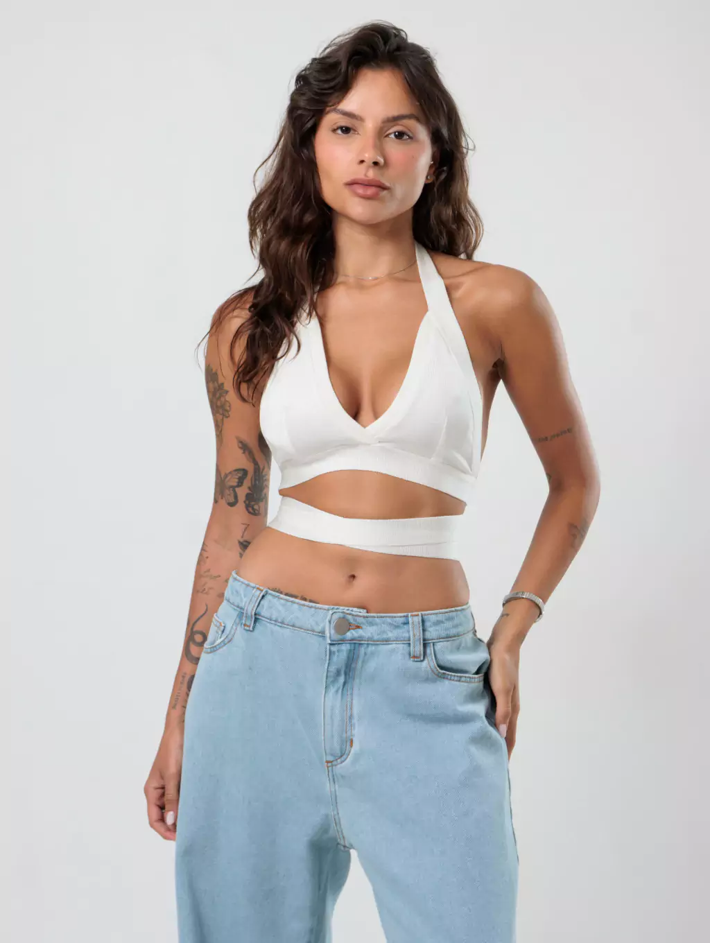 Top de tricot com amarração transpassada para fazer como preferir! Amamos tricot e esse modelo é lindo e super versátil.